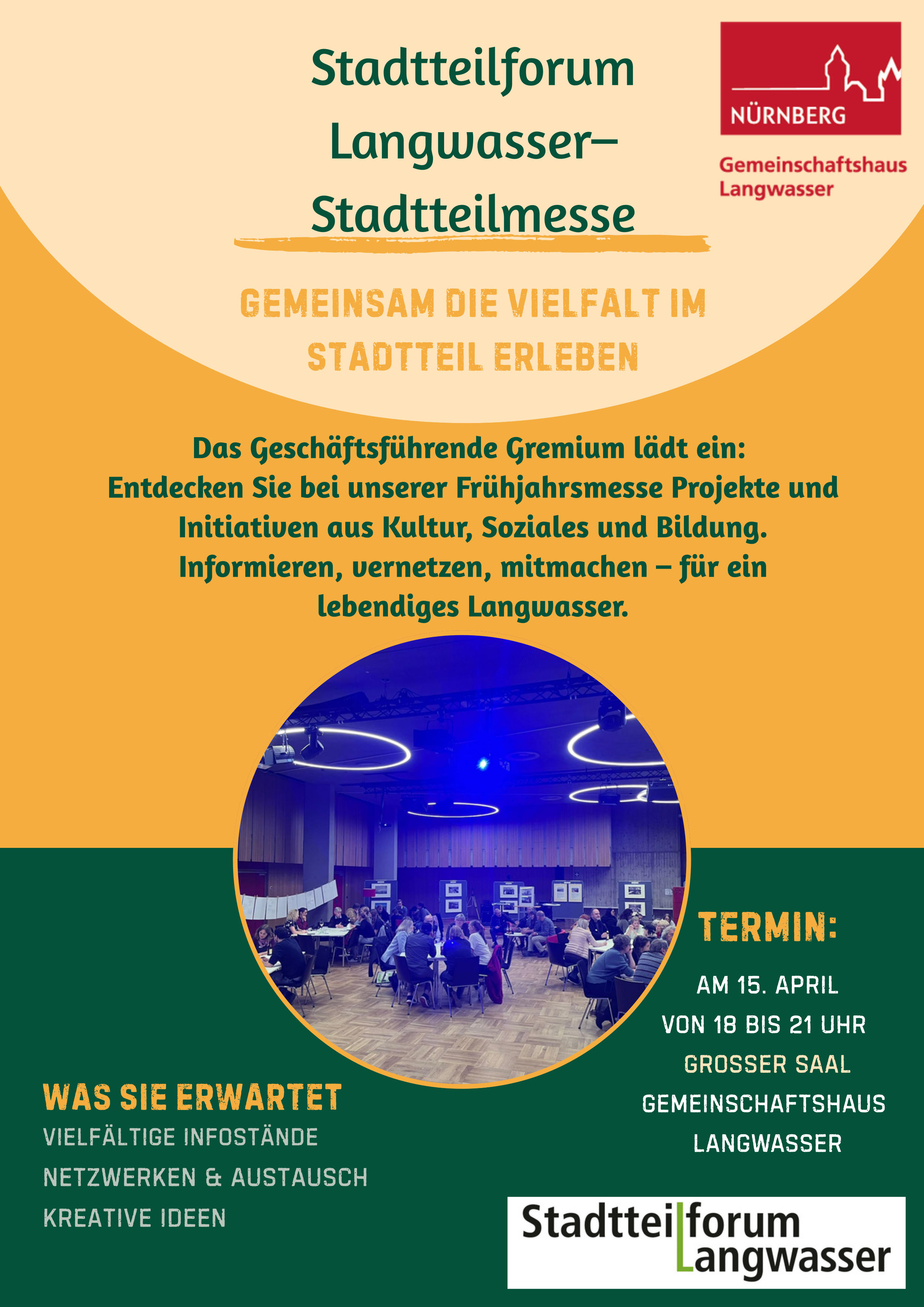 Zum diesjährigen Stadtteilforum Langwasser haben sich die Organisatoren etwas Besonderes ausgedacht: eine Stadtteilmesse im Gemeinschaftshaus, Glogauer Straße 50.