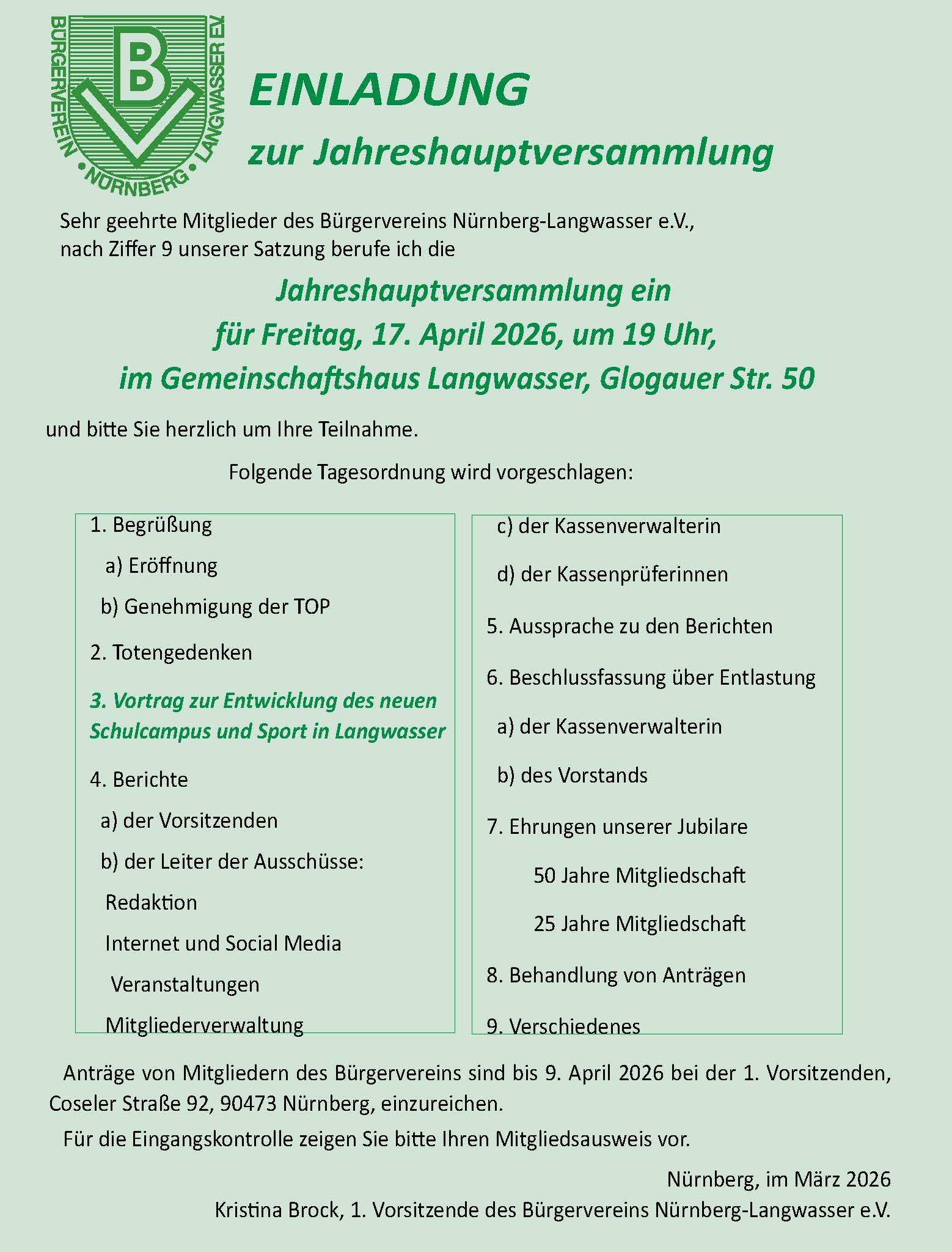 Wir setzen uns für ein lebenswertes und schönes Langwasser ein